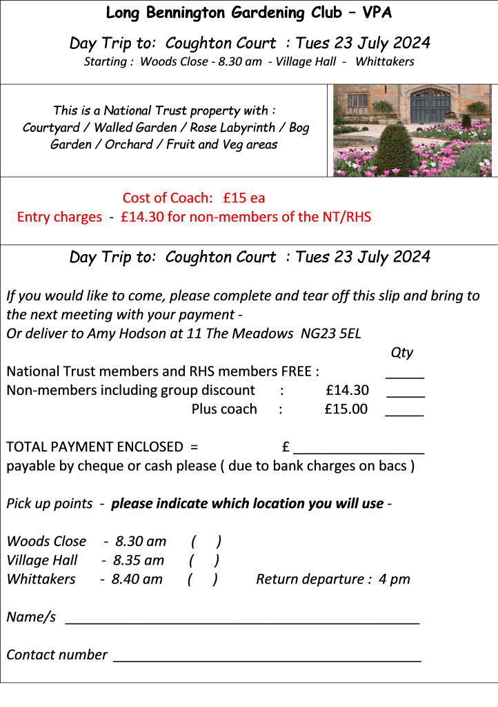 Club day trip, Tues 26th – Breezy Knees Gardens, Yorkshire. Over 20 acres of award winning gardens, a specialist perennial nursey – only one of a handful of British gardens with a current 5 star Trip Advisor rating, situated on the eastern outskirts of York. Pickup 0830 Long Bennington at 3 different locations: Whittakers, Opposite Village Hall, Woods Close. Return approx. 6.00pm – £20 per person, PLEASE NOTE this is just for the coach, you will need to pay an additional entry fee of £9 to the garden on arrival. To book a seat, press download button & print off form or just contact us. Also this trip is open to non-club members, don’t worry you will not have to join the club, open your garden or take part in plant sale, its just a nice day out, so again if you are interested just contact us !